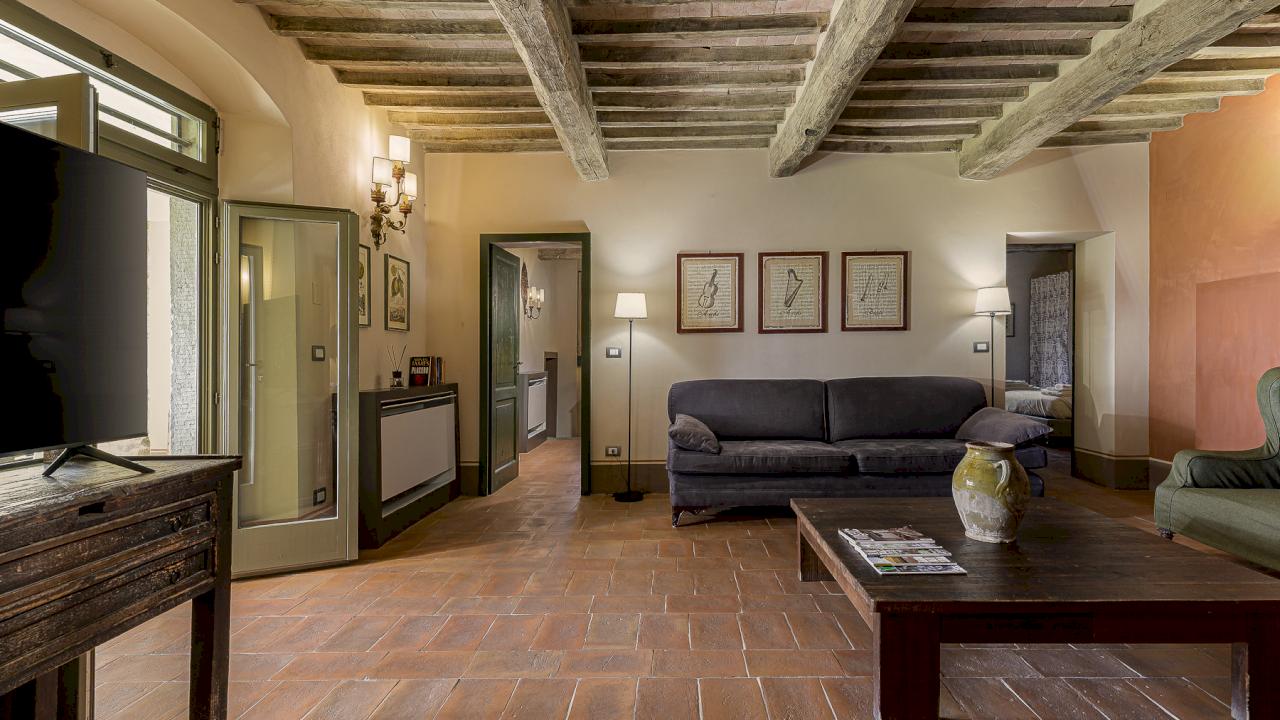 La Leopoldina, eine elegante Villa aus dem 19. Jahrhundert mit 452 m² Wohnfläche, bietet sechs Schlafzimmer mit Bad en suite, zwei Küchen, geräumige Wohnbereiche und einen 12 × 5 m großen Swimmingpool mit atemberaubendem Blick auf die toskanische Landschaft. Casolare 1, mit 361 m², verfügt über fünf Schlafzimmer und sechs Badezimmer, ein Wohnzimmer, einen Essbereich mit Küche und einen Garten mit einem geschwungenen Swimmingpool. Casolare 2, aus dem 13. Jahrhundert stammend und sorgfältig restauriert, bewahrt seine originalen Architekturelemente und umfasst fünf Schlafzimmer mit Bad en suite sowie einen 80 m² großen, von Grün umgebenen Pool. Das Anwesen wird durch einen ehemaligen kleinen Laden, vier landwirtschaftliche Scheunen und ein Heizhaus ergänzt.